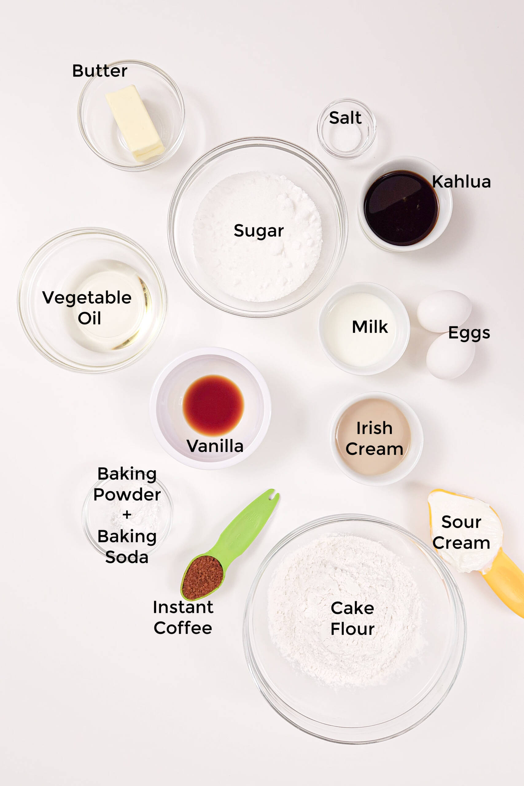 - Kahlua – store bought works fine, but you can make your own Kahlua as well!