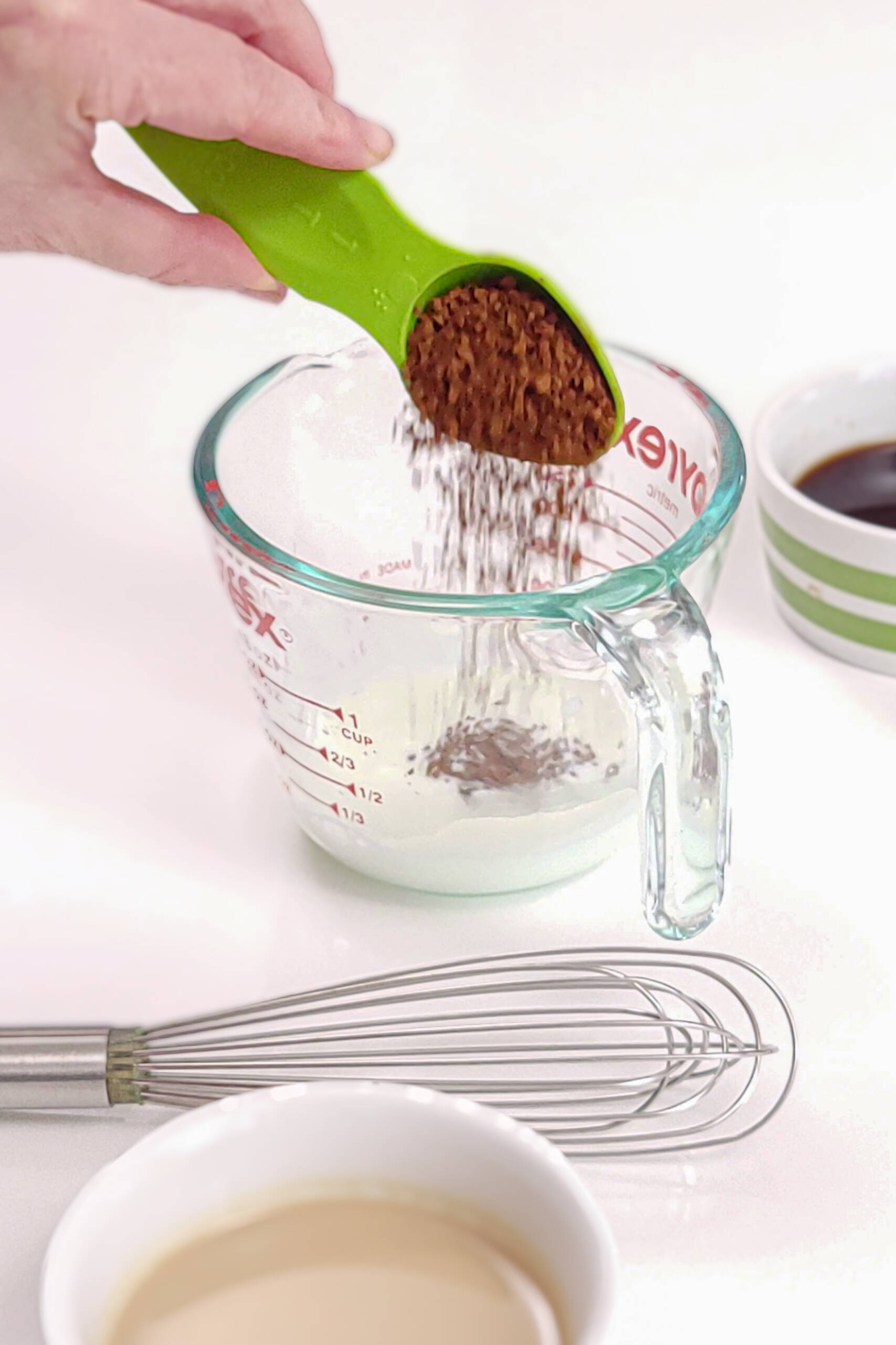 - In a small bowl or liquid measuring cup, whisk together warm milk, Kahlua, Baileys Irish Cream, and instant coffee until the coffee is dissolved.