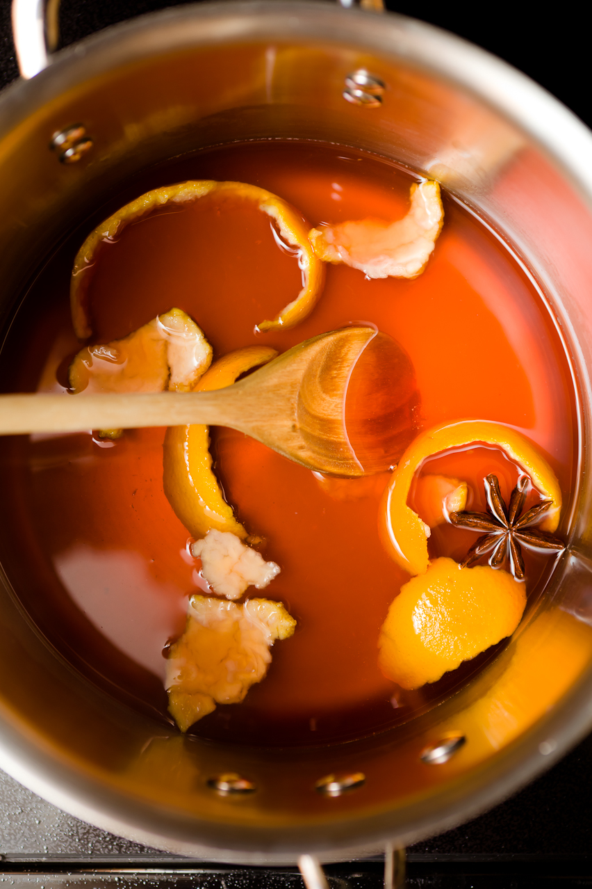 Add in the pitted cherries and let simmer for 10 minutes or until the juice has taken on some cherry flavor. (You’ll have to taste it to check.)