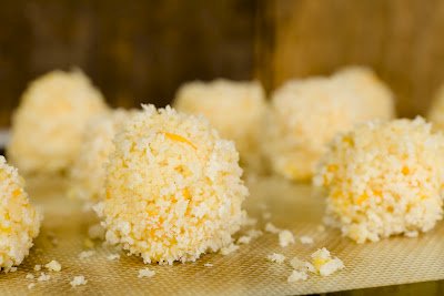 - Roll the balls in the remaining half cup of breadcrumbs. It won't seem like they are very solidified. That's OK. The balls will get a crunchy protective layer when they bake.