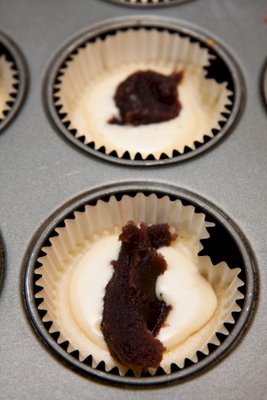 - Pour the remaining batter on top of the red bean paste, filling cupcake liners to the very top.