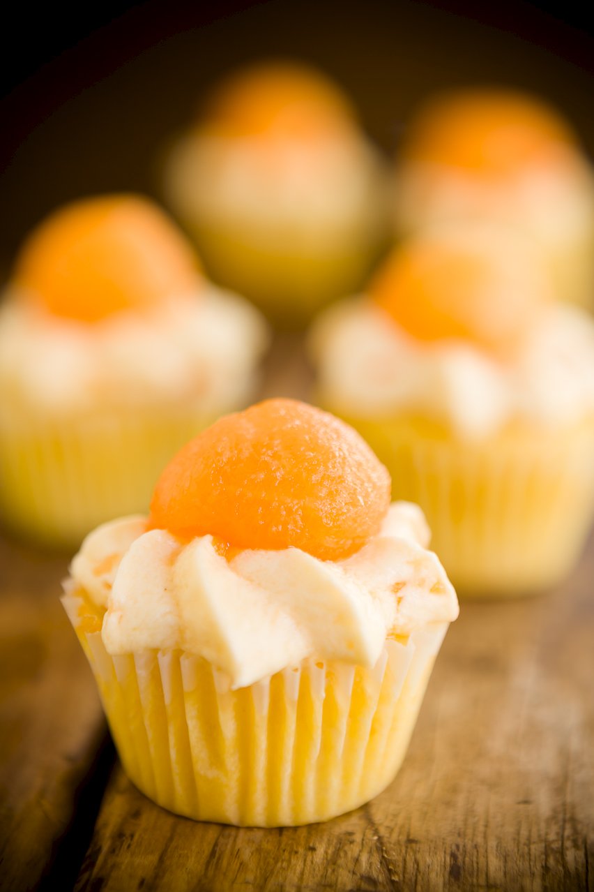 Summer must be coming to an end. My burning desire to wear worn-out jeans, boots, and anything chocolate brown is almost as strong as my craving to wear light skirts was in early Spring. Before letting summer and its ponytailed, sandaled, swimming pool splashes disappear, I had to give it a proper cupcake sendoff. The golden ball of cantaloupe that tops these cantaloupe cupcakes almost looks bright enough to give you one last tan (or, in my case, burn).