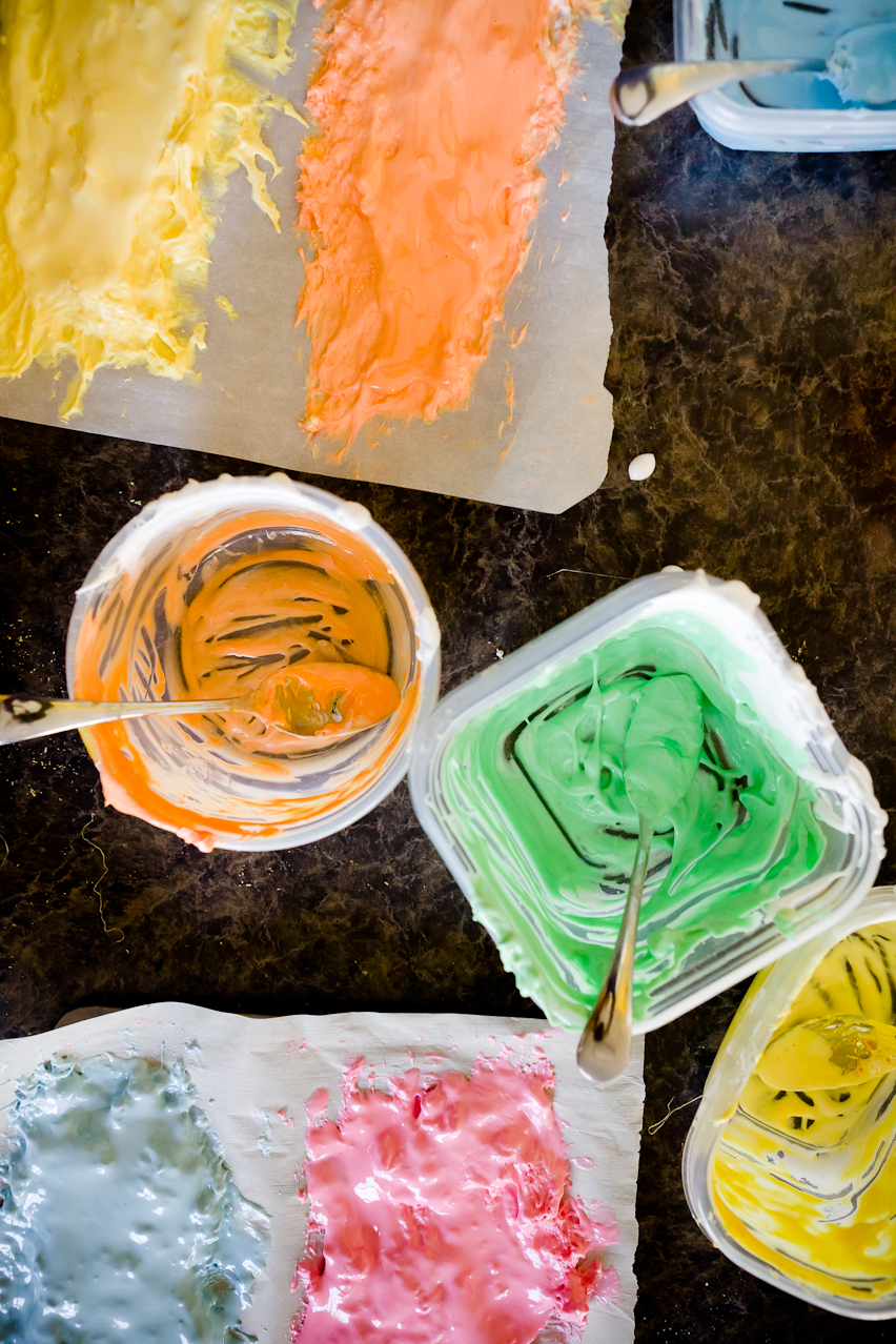 - I could tell you how to make the marshmallows, but I used Bravetart’s Method almost word for word, so you should just read the instructions there. The only change I made was to leave out the orange flower water (it didn’t matter at all). I would also advise that when you pour out the marshmallow onto cookie sheets (shown above) that you err on the too thin rather than too thick side. I made some of my colors overly thick and it took them an extra two days to dry.