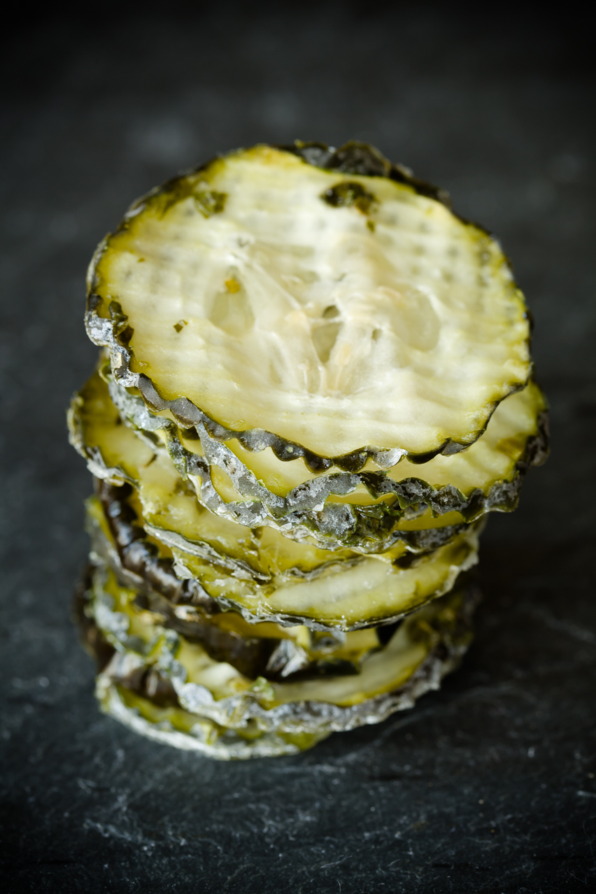 I posted the above photo on Facebook and asked people to guess what it was. I had over 100 guesses. Many of you were close – you could tell it was a cucumber or a pickle and you knew it was dehydrated. But, no one guessed it was candied.
