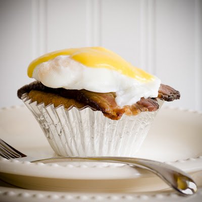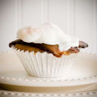 Cupcakes Benedict – Maple Cupcakes Topped with Black Forest Bacon, Poached Eggs, and Maple Hollandaise Sauce