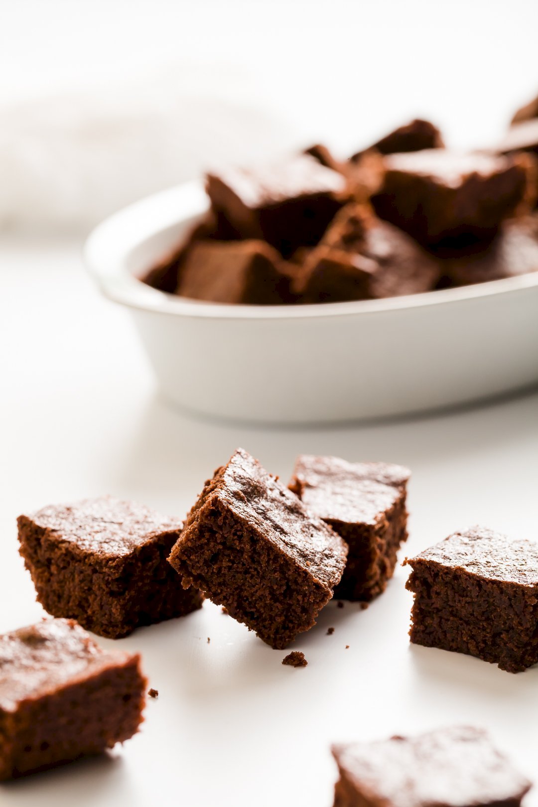 My cakey brownies don’t have a caramel or chocolate sauce drizzle, don’t have any surprise flavors or bonus ingredients, and don’t try to be a unique dessert mashup like a brookie. I fought the urge to give them some flare for this post. I wanted to show you exactly how I serve them. (Although if I were pressed, I would say you might try topping them with my basic but beautiful chocolate cream cheese frosting.)