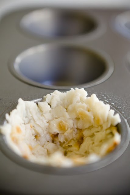 - Press a layer of wet matzoh into each cupcake well, being sure to push it all the way up the sides as shown in the photo above.